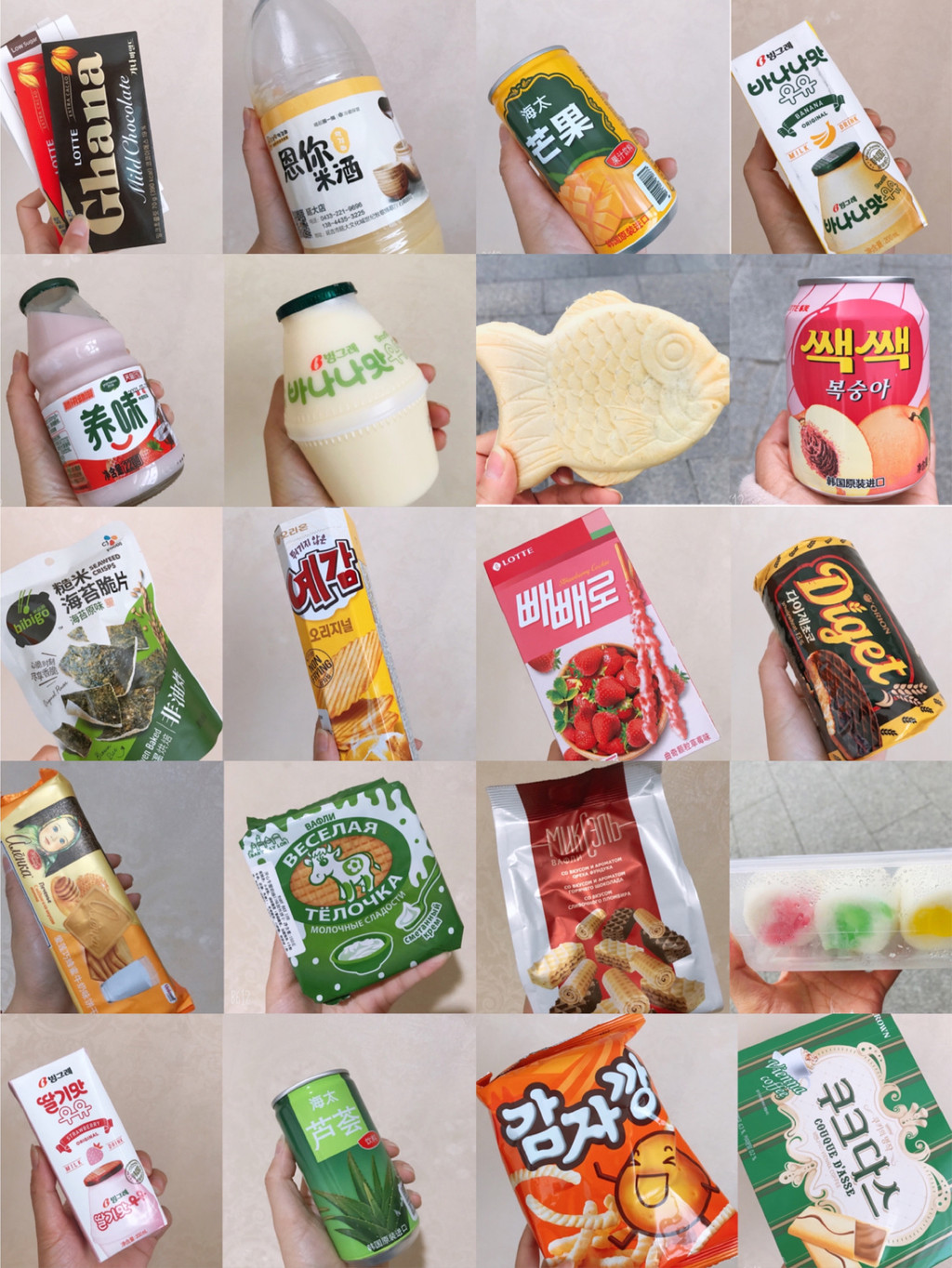 强推:香蕉牛奶和好丽友全麦巧克力饼干(第二排第2个和第三排第4个)真的可以在超市逛一上午。。。