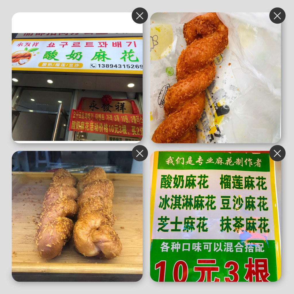 沿路有个连锁小吃,酸奶麻花,10元3根,推荐指数:★★★★★