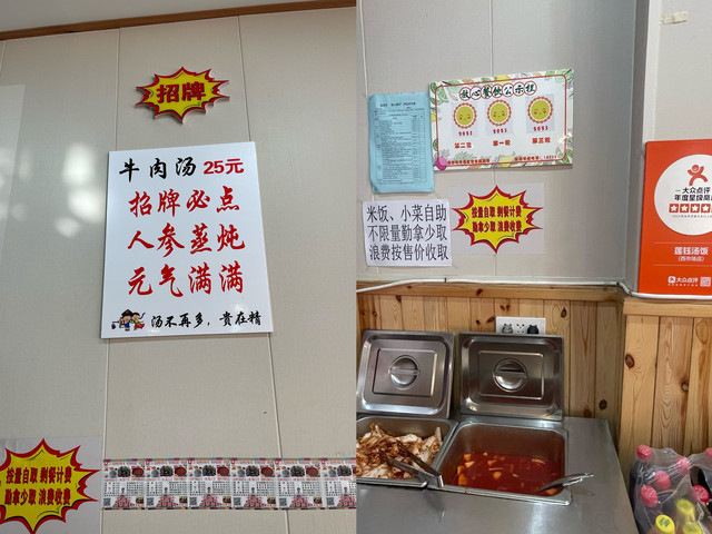 小店不是很大,不过服务员一直都好忙。我看墙上贴着自己的招牌:牛肉汤饭!服务员说让我扫桌子上的二维码点单就好了。