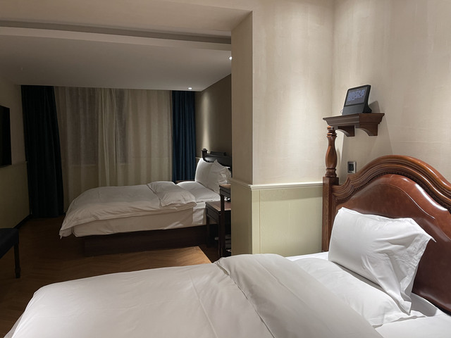 上次去长春是五月份,住的雅克小镇新天地店是他们品牌的加盟店,这个是直营店。房间开了地暖哦,温度超级暖和哦,暖和到晚上热到喉咙干涩和嘴唇脱皮。服务员妹子跟我们说要把房间里准备的空气净化器和加湿器打开会好很多,地暖是不能调节温度的,但是晚上会自动关闭的,就不会太热。