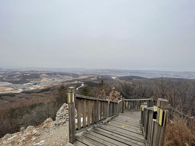 最高点其实就是瞭望台。看到瞭望台已经爬的上气不接下气了。只想坐着休息休息。山顶如果是春天绿意盎然的话风景应该不错,或者是蓝天也不错,可惜现在是阴天。