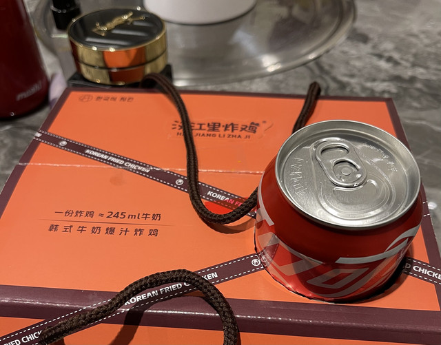 汉江里炸鸡,延吉大学这里的门面挺大的。叫了外卖,还加了1元钱买了保温袋,小伙伴说他家的外卖带和包装都好时尚哦,居然用的是爱马仕橙!