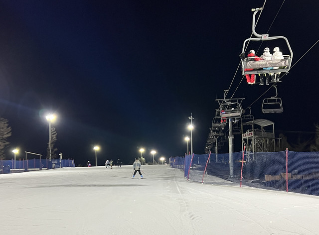 等着夜场开幕的1个小时,小伙伴在雪场买了一杯他们的咖啡。咖啡不贵,饮料贼贵。学场有小卖部,卖得饮料价格不贵,也有吃饭的地方,价格也还能接受。滑雪场的以为不会很多,发现也有将近七八十人哦!