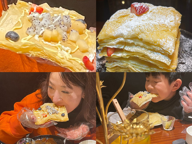 甜品拿破仑也是惊艳到我的一款甜品,我想说他家的甜品师手艺是到位的。这款拿破仑和上海知名的某甜品的拿破仑的酥皮是能媲美的。而且拿破仑内里的水果给的一点不吝啬。店家给了一次性手套让手抓着吃,这是必须的,太酥,真的好吃的!