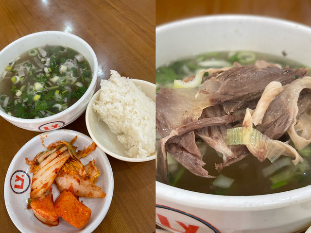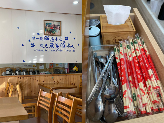 我是10点到店里的,应该不能算早饭了吧!点完单后发现外卖小哥来了好几拨。看来这家店名声在外的吧!自己取了点泡菜和萝卜吃,好吃艾,不是很辣,特别是萝卜,水分好多!