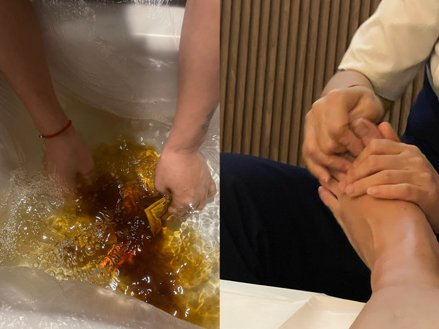 我和小伙伴说这里供应面点到23点,我们要不就直接把晚饭解决掉算了。他们有重庆小面,有抄手和汤圆吃。小伙伴表示惊呆,说以为只有茶水和零食水果。180元90分钟的捏脚要体现出它的实惠和价值呀!