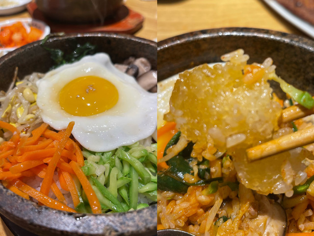 招牌的石锅拌饭是选用天然的食材制作的:延吉的大米和延吉的拌饭酱。26元一份。看看隔壁在吃的基本都是一份石锅饭加一份石锅汤。