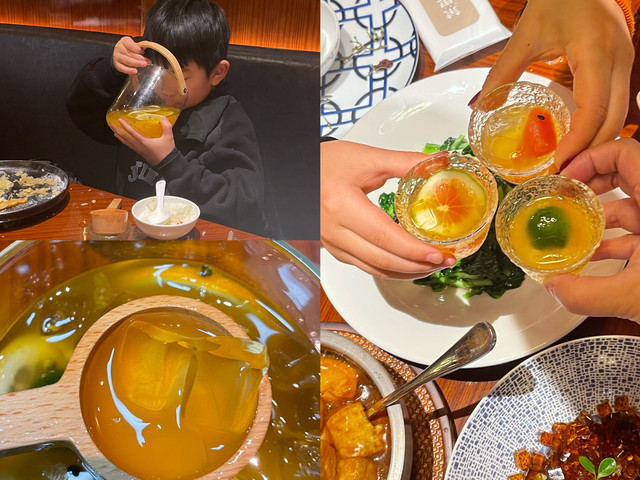 我想特别说一下餐厅的粤式甜品。首先说下小朋友爱的百香水果茶。用很时尚的冰桶装着,颜色好看,水果也是给的品种很多大气。关键是小朋友爱的不得了。喝饮料多过吃饭!
