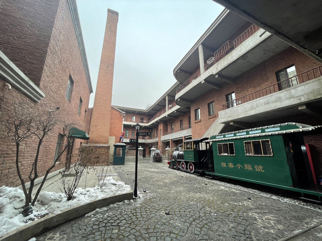 这个民国风格的酒店前身是一个工厂和仓库改建的,所以院子里还保留着老火车和一些老物件,非常的怀旧,店里还有国民的旗袍可以免费的换装,不过天太冷了我们没有尝试,主要也没时间,哈哈!大厅还有小朋友的玩具区域。还有一台钢琴,环境还是挺不错的。大厅还有免费的饮用水和小零嘴可以免费自取。