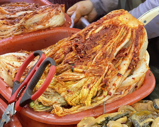 泡菜应该是生意最好的摊位,我发现每个卖泡菜的摊位都有人头。看着就好吃的样子。都好新鲜,都是大姨们自己做的。真的很小时候逛菜市场的感觉。亲切!