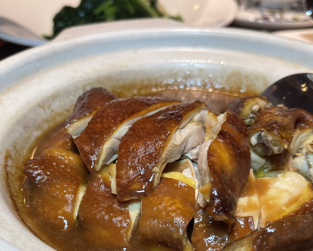 粤菜餐厅里最最彰显自己的一定是家禽类型的菜。套餐里包含着香港豉油鸡。是用砂锅呈现的。一份是半只鸡。鸡肉还是很鲜美的。口感不错。好吃的。