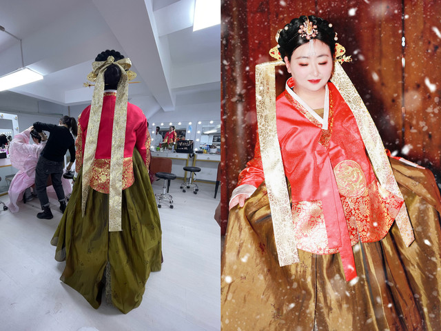 去延吉换装拍照对我来说是最重要的一项计划。但是对于拍成什么样子我还是很佛系的。去之前就在网上刷别人的照片,看了都觉得都是小清新的小公主,貌似不适合老阿姨的我!我就是想好要夸张的头饰。后来才知道那个叫宫廷装。