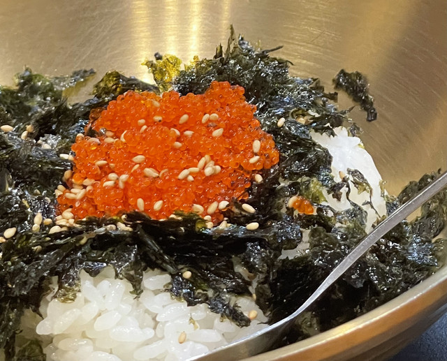 他家的前菜是自助的,吃完可以去调料台自己续泡菜等。不过他家的泡菜看着就不太符合食欲啊,大蒜什么的,真的不喜欢,也不想尝试,吃不惯。
