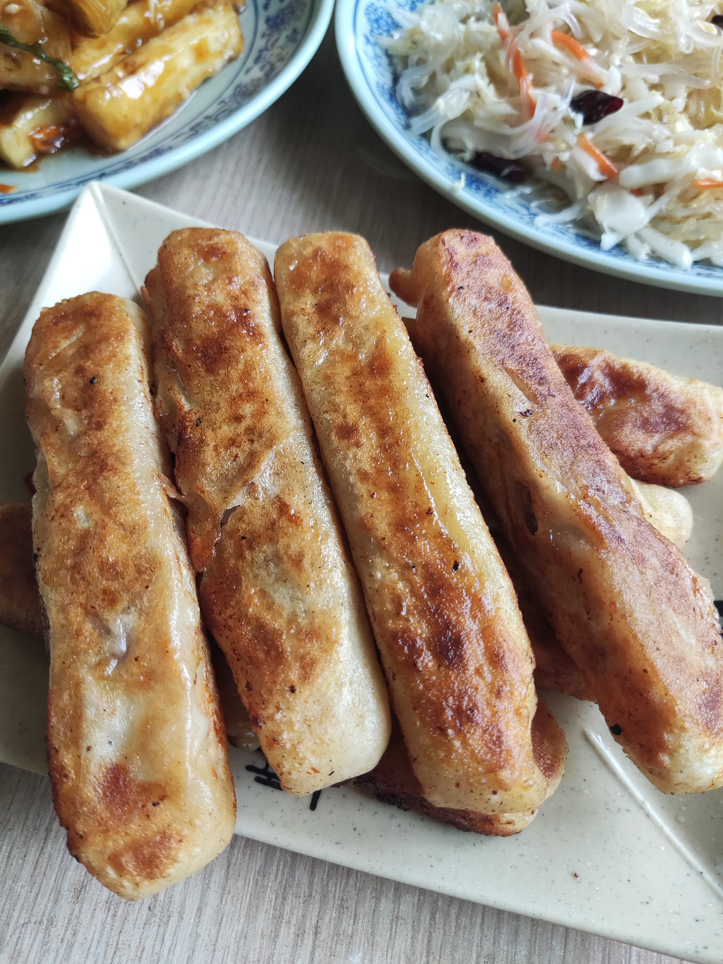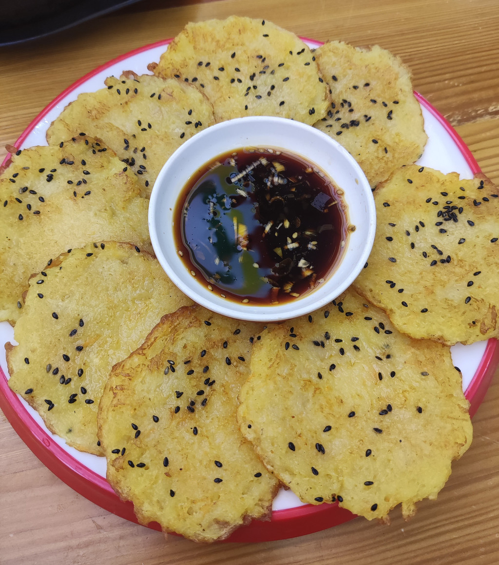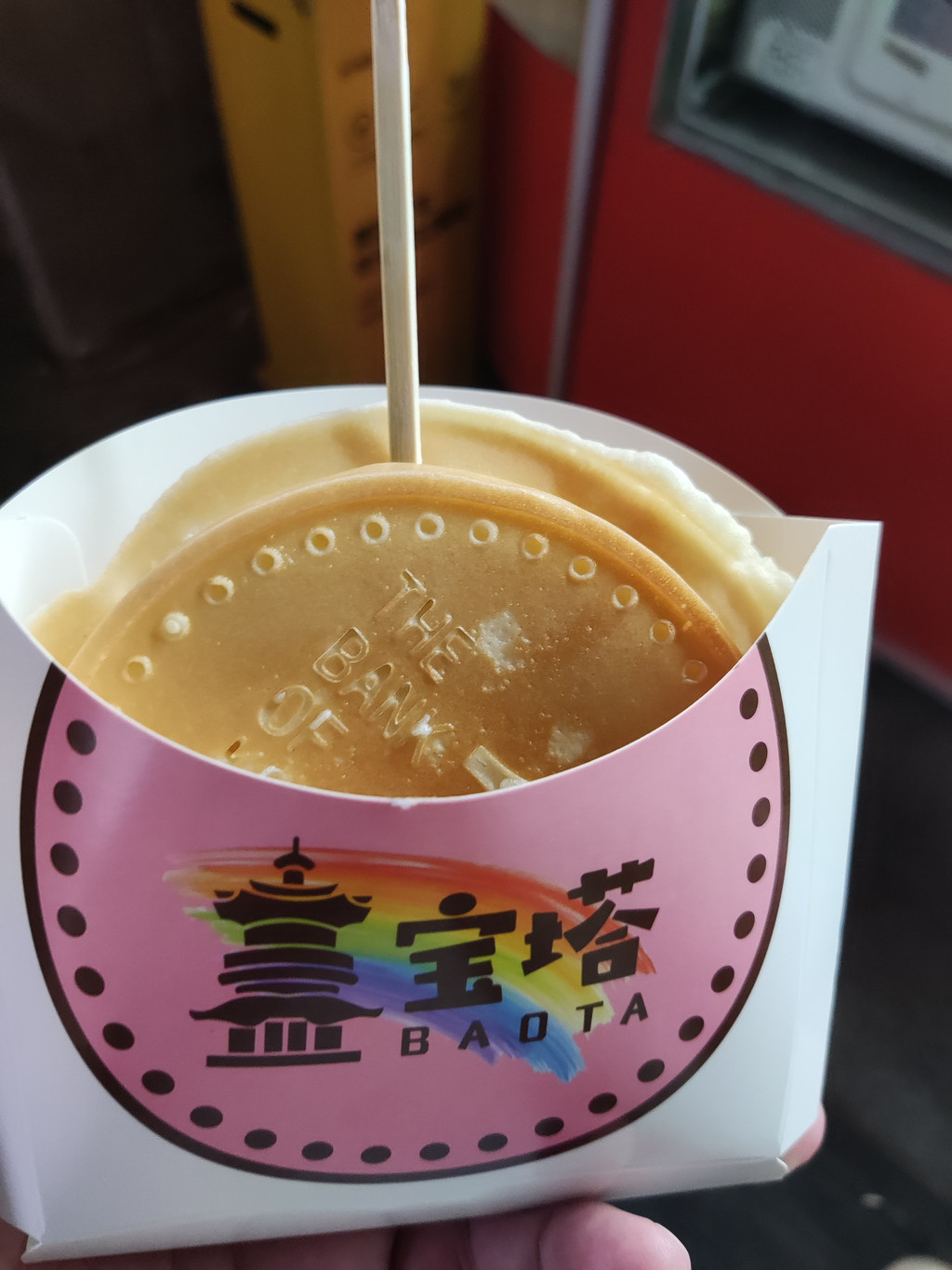 我们住的酒店说是在网红墙附近,其实走过去也要十几分钟。但实际上网红墙那边太热闹了,不安静,价格还贵也不适合住。晚上步行去了网红墙看了看,顺便吃了晚饭。吃的泡饭和土豆饼。土豆饼是软的,好吃的。