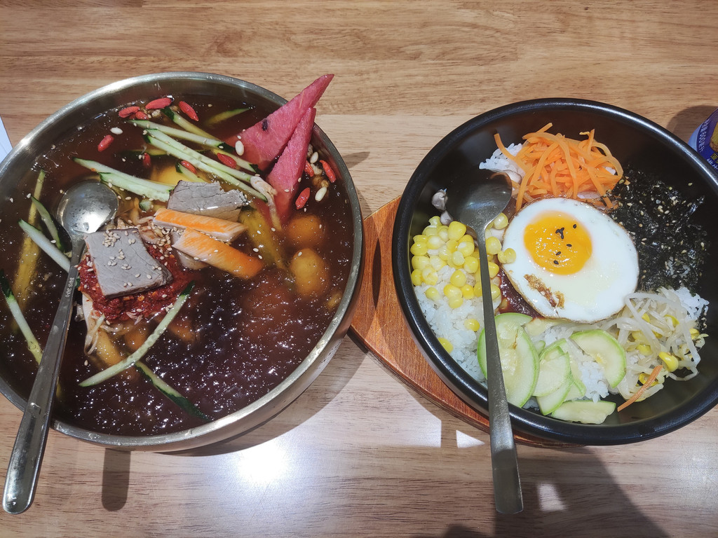 下午我们安排去图们半日游,坐高铁延吉西站到图们北15分钟就到了。出站右手方向9路公交到铁路国门目光山站,2元一位。出站人都往那边去很好找,回来在下车点对面坐车返回火车站。发车时间要等,要预留好赶火车时间。在图门吃的冷面和拌饭还不错。天热在咖啡馆点了冷饮,挺好吃的。图们主要是国门拍照,看看对面朝鲜风景,地方不大半天时间可以玩完。全程下来挺方便的,没有必要报团。