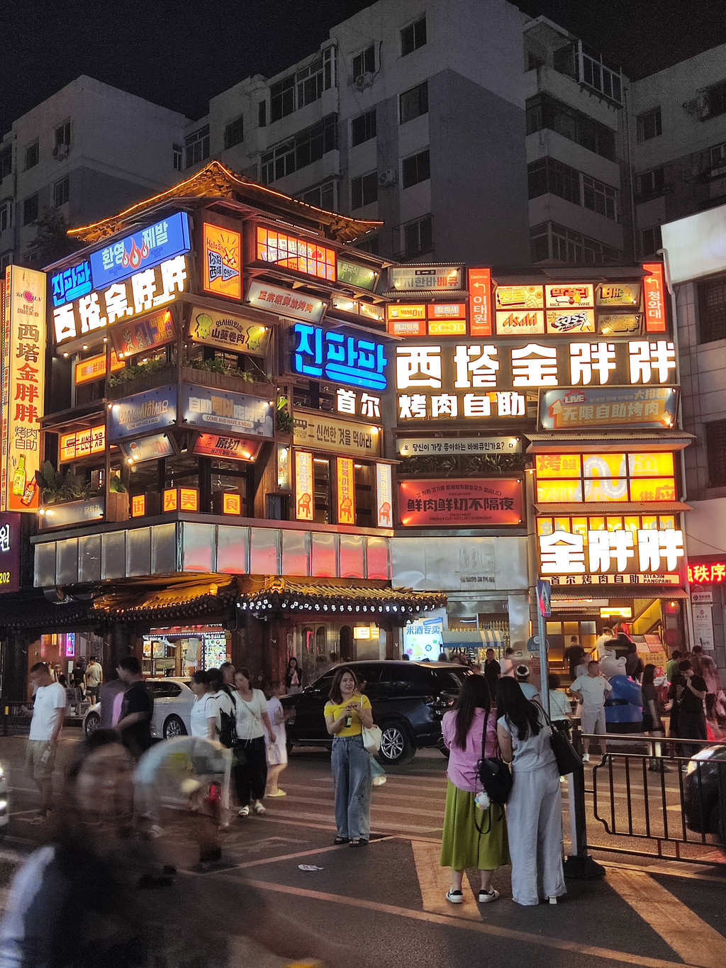 晚上去了西塔美食街,很有韩式特色的一条美食街,晚上去霓虹闪烁非常好看,人特别多,餐厅吃饭都排队。值得一去,不愧是网红打卡点。