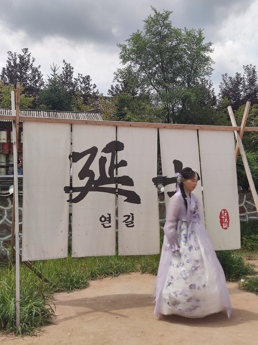 延大出来后去了朝鲜民俗园(票价30元)里面是一些朝鲜特色的场景,都是拍照的小姐姐,人很多,挺好看的。