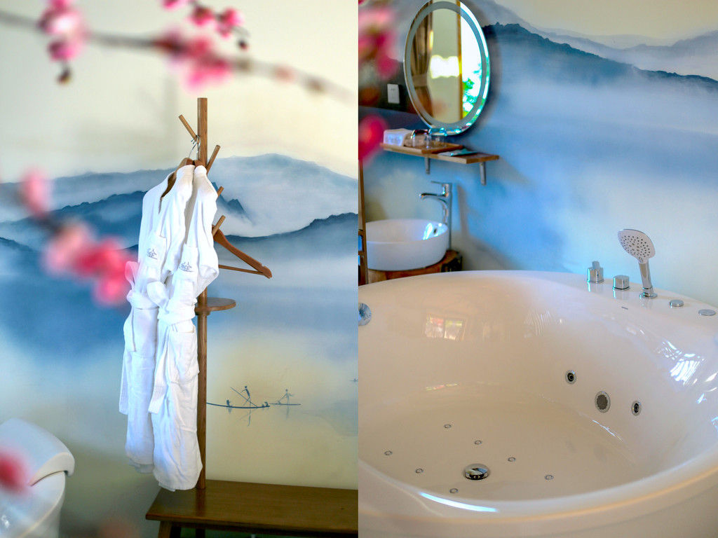 小院属5居独院,有不同房型可选,我们两口子选择了带泡泡浴缸+蜜月风情的大圆床房间。