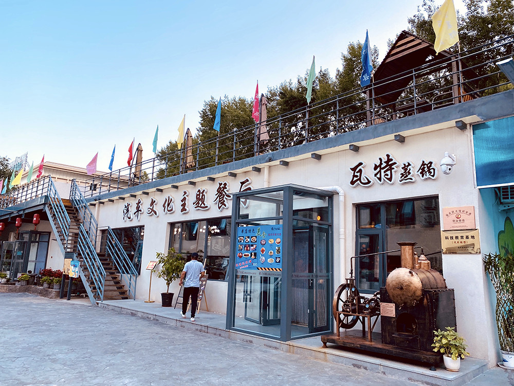 晚餐选择在民宿内的汽车文化主题餐厅-“瓦特蒸锅“用餐,主打私家创意融合菜。二层是更大的屋顶露台,开放性的空间非常惬意,可以在这里烧烤、聚餐、游戏、纳凉。