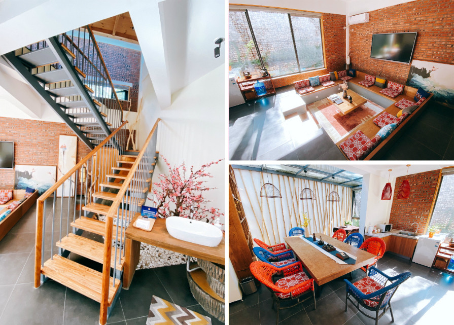 院子里的不同的户型,满足不同的家庭需求,也能看到不同景致,充满阳光的下沉式休息空间、转角的楼梯、宽敞的厨房休息区,组成功能完整又舒适的临时之家。
