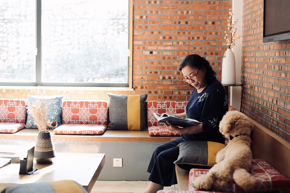波比陪着A妈的阅读时光,就是岁月静好的模样。