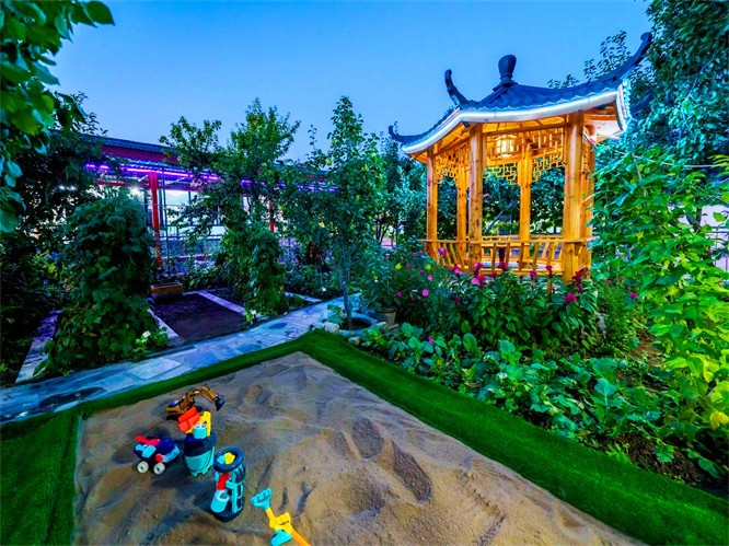 庭院内的沙滩,深受小朋友们的喜爱,安静小院里疯跑的小孩,感受这种闹中取静,和谐友善的生活方式。在夜晚,添上几许灯光,在朦胧中传递出缕缕温情。