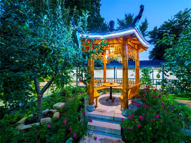 庭院内空间很大,设有小凉亭,可以和心爱的人一起看星星,尽情的感受着纯净自然的田园乐趣,有繁华落尽的哀叹,也有草木渐深的欣喜,院子虽然不大,但是充满格调。让时光变慢,疗愈心灵,回归宁静。才