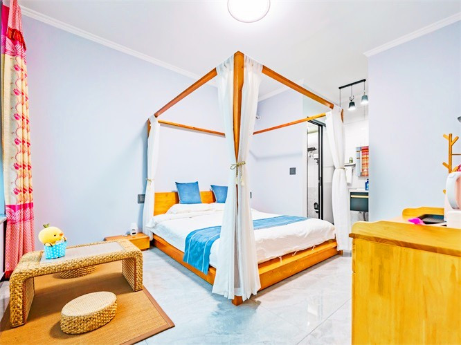 客房以白色为主,简约温馨的风格,客房5间,容纳12人左右住宿,房型大床房,双人间,家庭房,榻榻米等,简单的氛围,十分轻便的家居装饰,颜色素雅的设计风格,受到了很多年轻人的青睐,装修精美住宿体验舒适,床上用品的品质也是一流。