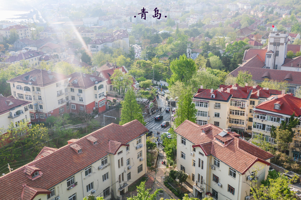 小鱼山上俯瞰青岛老城区,红屋顶超级治愈
