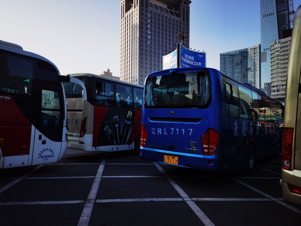 大连港的数台旅游大巴,将我们载往大连湾客运码头。