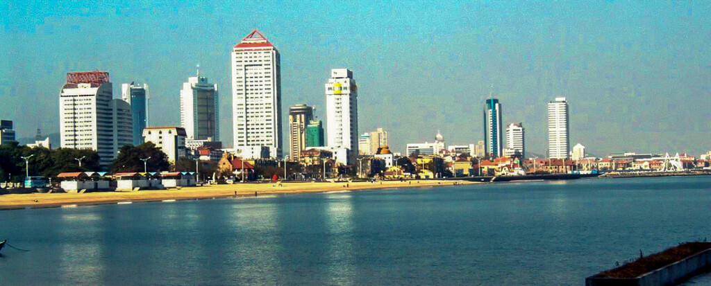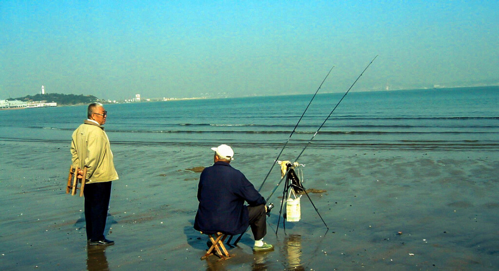 海,诡谲多变。昨天,满眼都是黄滔滔的浊浪,今晨却变成了一片无边无际的青翠的草原,海水略呈暗绿色。风不大,水面上荡漾着一朵朵银白的浪花。海燕贴着水面低飞觅食,一眼望过去的海滩,细沙像绒毡子一样伸入海里,浪涛像在海风中的一块巨大无比的绿色的绸子似的,起伏不定,一眼望不到边缘。当红日东升的时候,海水给染得如同一片燃烧着的火海,浪涛仿佛是火苗似的在清晨的阳光中跳动。太阳升到天空,她又在海面上撒了无数的银光,远远望去,如同亿万银鱼在绿色的浪涛上跃动。住在海边的人们,这时候照例到海滩来玩耍了。 烟台 海岸垂钓的场所历来以海岸路为最佳。此处,西边的 烟台 山和东边的东山嘴子抱成一个海湾,岸边有石凳,对面是风景如画的芝罘岛,亲自垂钓的与在一旁观看的,都在画中,有无收获都是愉快的。