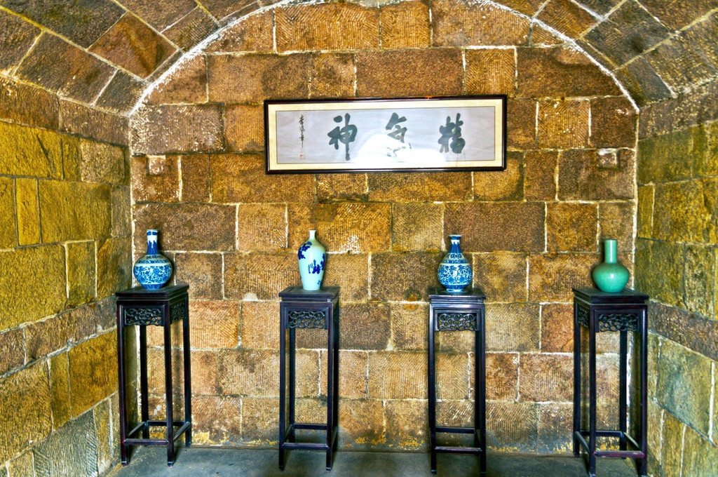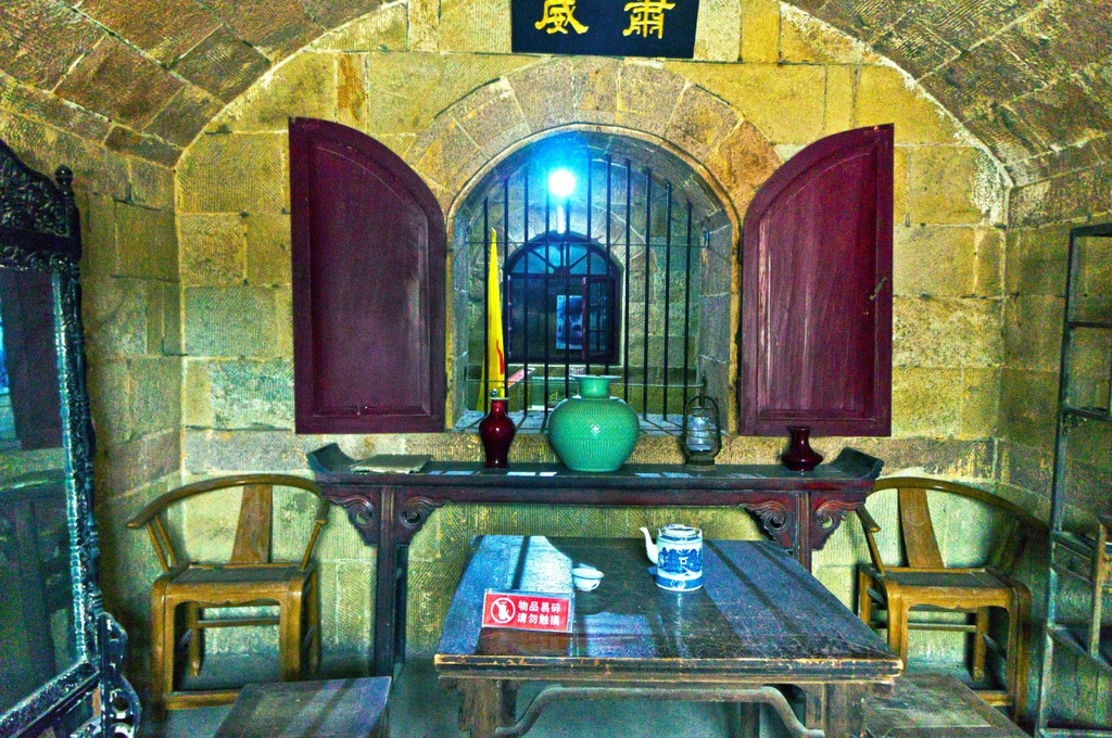 走进拱门,便可见历史上的清军营房。营房位于炮台后部的山坡下,是用于各级官兵的指挥所、议事处、休息室、藏兵洞等,也是弹药库和地下掩体。