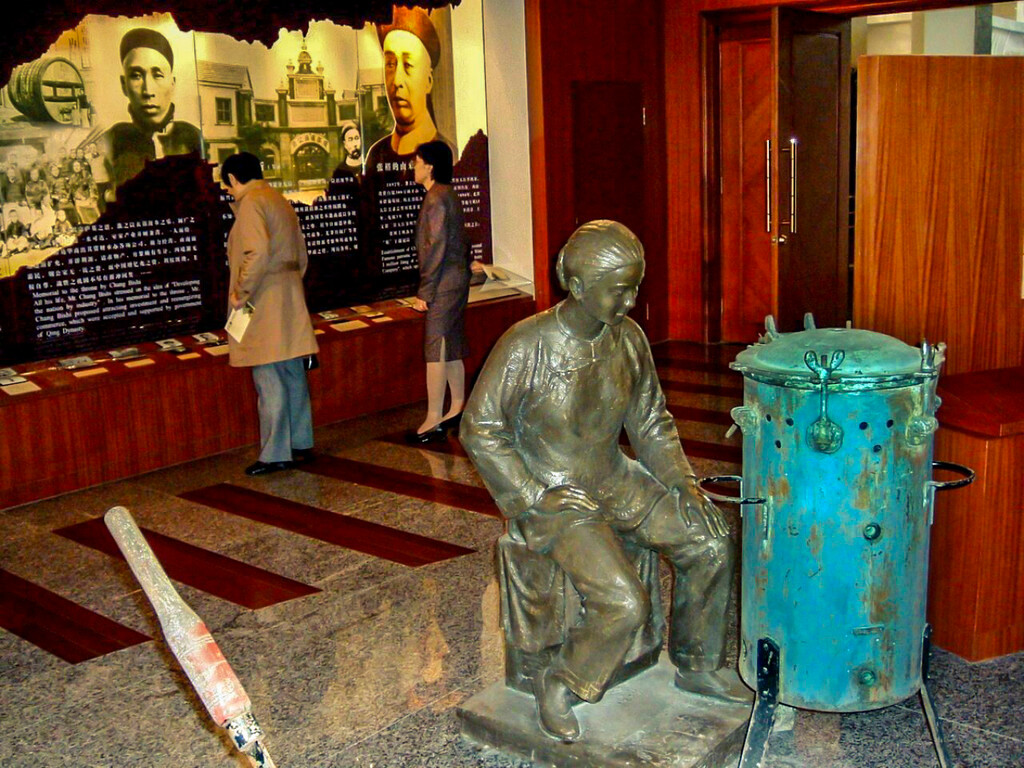陈列室,陈列有当年使用的一些器物的仿制品、历史人物雕像、文字说明和图片等。