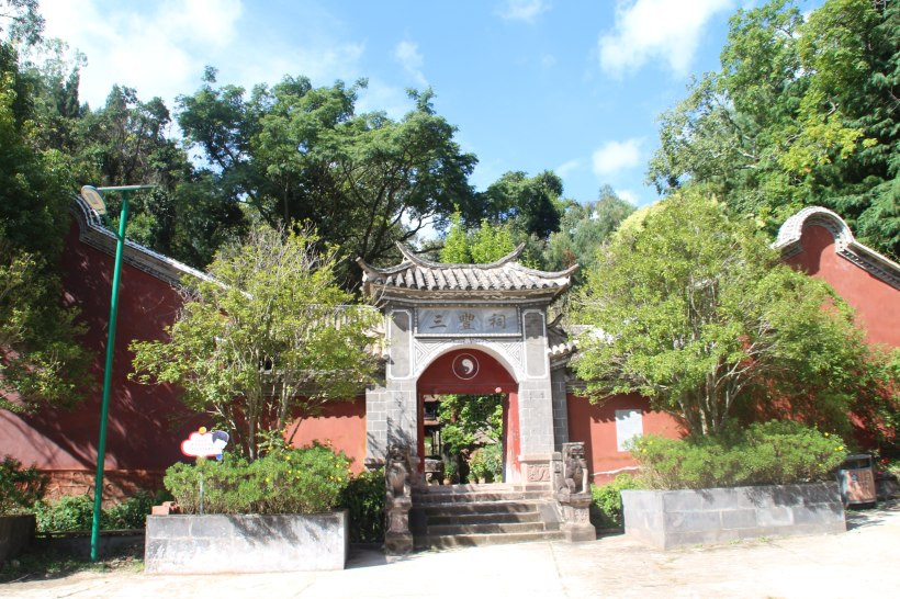 出古刹大门,回望古刹背后高山。其实在云南这算不高山,只能说是山而已。