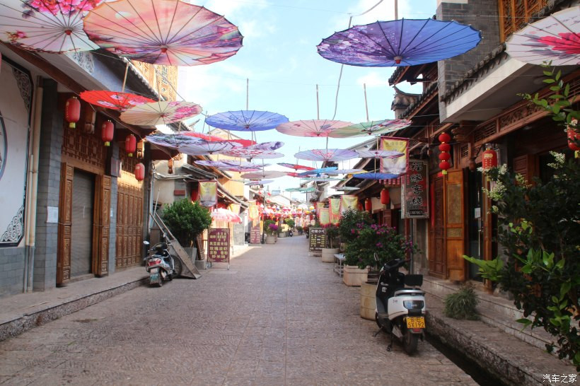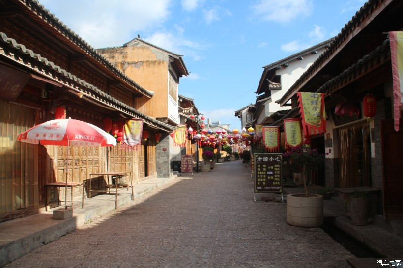 顺干净街道直走,在古镇大门处右转进入新城街道。