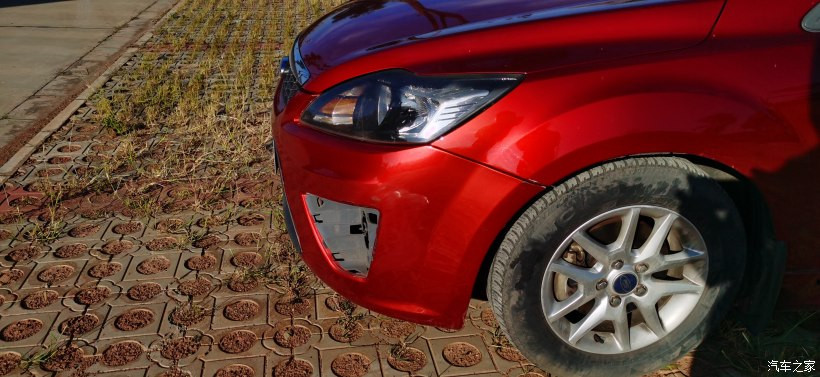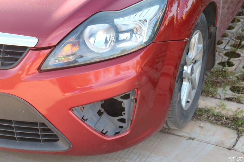 到达游客中心,才发现昨晚停在停车场小福,不知被谁把左前下巴撞成这样。