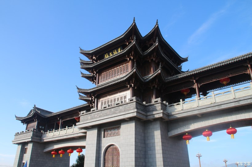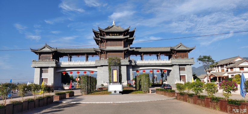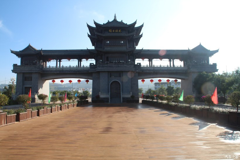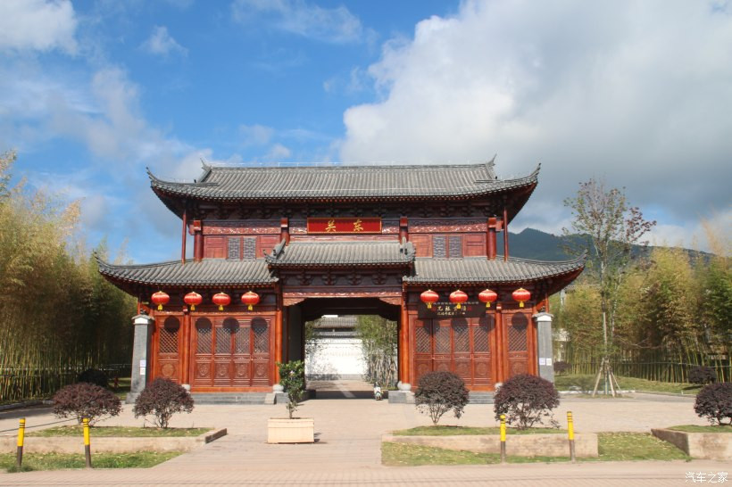古镇新街子二正对着的,就是古镇大大门入口了,开车来,在左右两侧路边停车,尔后从此处进入古镇。