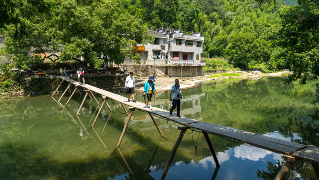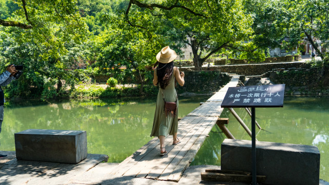 镇子被河隔开两岸,同时有几个晃晃悠悠的小桥通往两岸,也为青色烟雨的瑶里,增添了一份诗画意境。