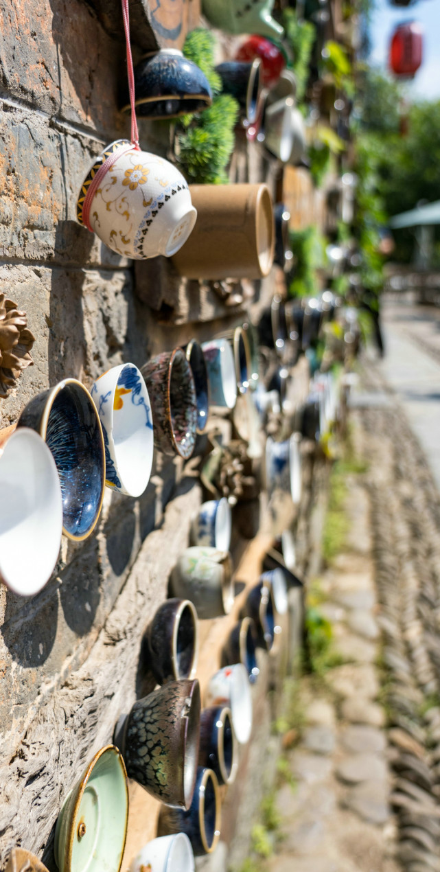 因瓷而闻名的瑶里,镇上自然离不开陶瓷元素。在一些小店,装修大都与瓷器有关,满满的瓷都风。