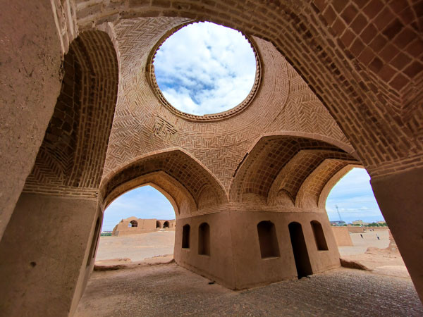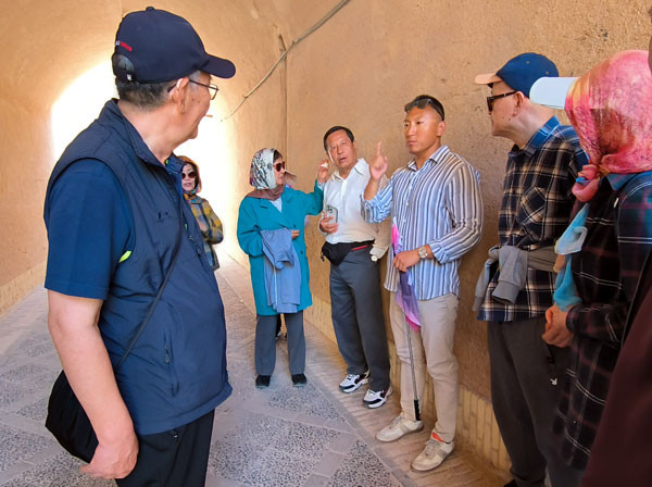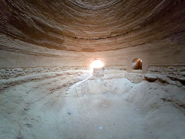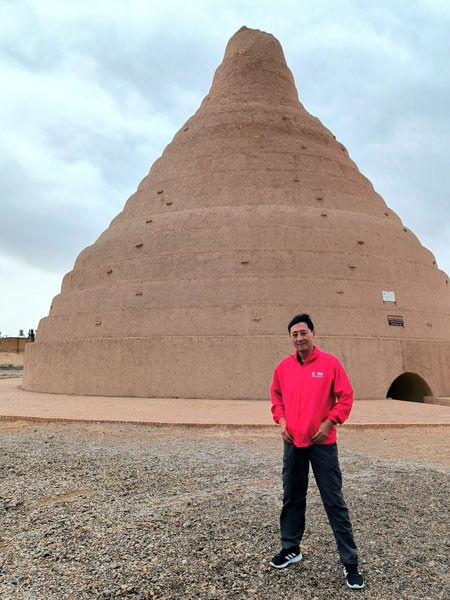 当日伊朗时间13:40,团队在途中小憩,余粟带大家见识了一座古老的伊朗冰窖,外形很像中国人吃的窝头的造型,然而其内部却构造的既十分科学又很独特,保存完好的这座冰窖,充分反映了古波斯人的智慧。