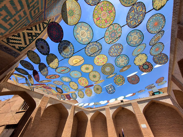 走进清真寺“依旺”,只见其内部精美的波斯马赛克和巧妙的建筑结构堪称经典,清真寺的宣礼塔也是伊朗最高的,高达48米。清真寺的其立面从上到下贴满蓝色的美丽瓷砖,内墙和天花板更是装饰着富丽豪华的马赛克瓷砖。