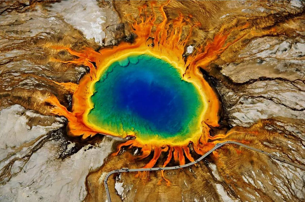 园内设有历史古迹博物馆,还有数以千计的温泉,这些温泉碧波荡漾,水雾缭绕,上百个间歇泉喷射着沸腾的水柱。黄石公园大棱镜彩泉,被誉为“地球上最美丽的表面”。