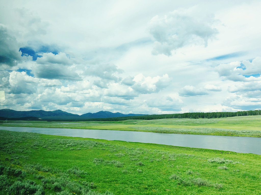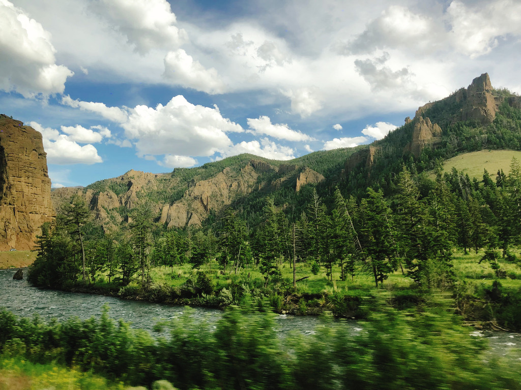 “在山间,在水边,生得自在,长在天地间。在幽谷,在径前,寒木春华,一年又一年。”听着耳机里的音乐,看着眼前的景色,早晨7:30,从吉列小镇Gillette出发进入洛基山脉,向盼望已久的黄石国家公园Yellowstone National Park行驶。