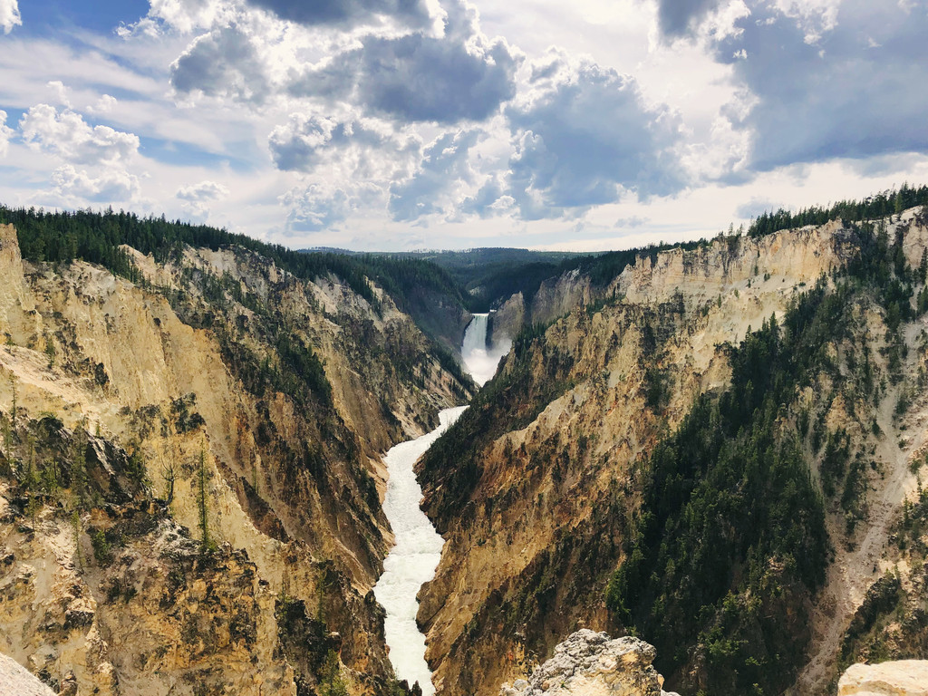 瀑布峡谷:公园内有290个高度在4.6米以上的瀑布,其中最高的是94米的黄石瀑布。今天行程的最大亮点便是来到黄石大峡谷,远眺黄石瀑布。如果自驾游的小伙伴,建议按徒步路线去瀑布脚下,观赏瀑布近景。