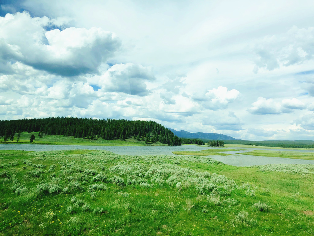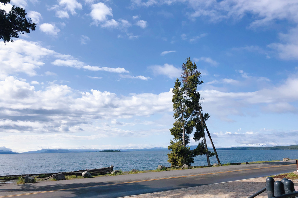 还有最有名的就是黄石湖,位于黄石火山中心,湖岸线长180千米,海拔高度约为2,357米,最深处有120米,是整个北美地区最大的高海拔湖泊之一。我又查了一下,黄石湖的面积比洱海还要大,一眼望去,便感叹大自然的无限美好。