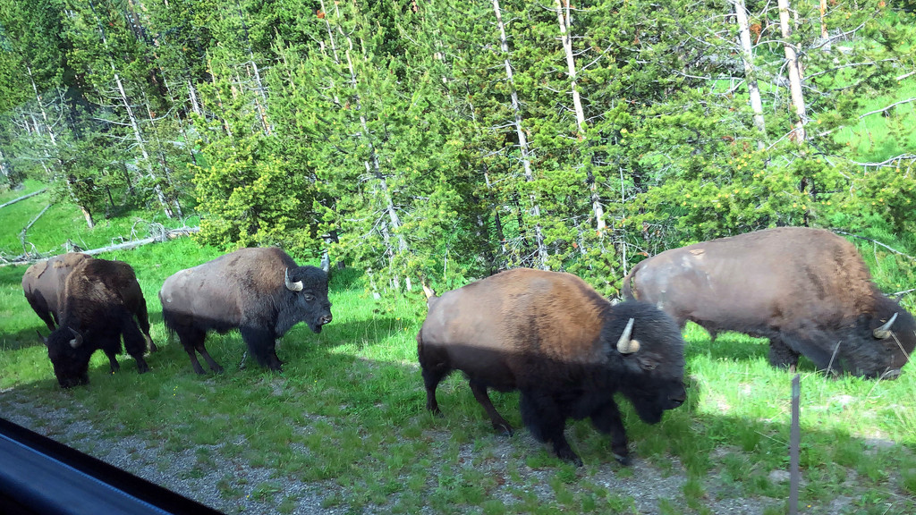 动物家园:黄石被普遍认为是美国本土48个州中最好最大和最著名的巨型野生动物群栖息地。黄石公园野牛群是美国最大的美洲野牛群,还有灰熊、狼、高角鹿以及各种珍稀水鸟。行驶进公园的车辆,一定要注意前方路况,有时不一定什么时候就跑出来几个慢悠悠在公路上逛街的野牛,你也得注意让行。
