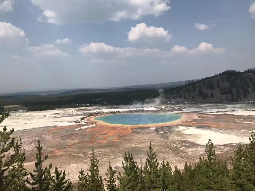 大棱镜温泉,建议先从温泉旁边的一条土路走到上面去看温泉的全景,美,久居其中反不知其美。