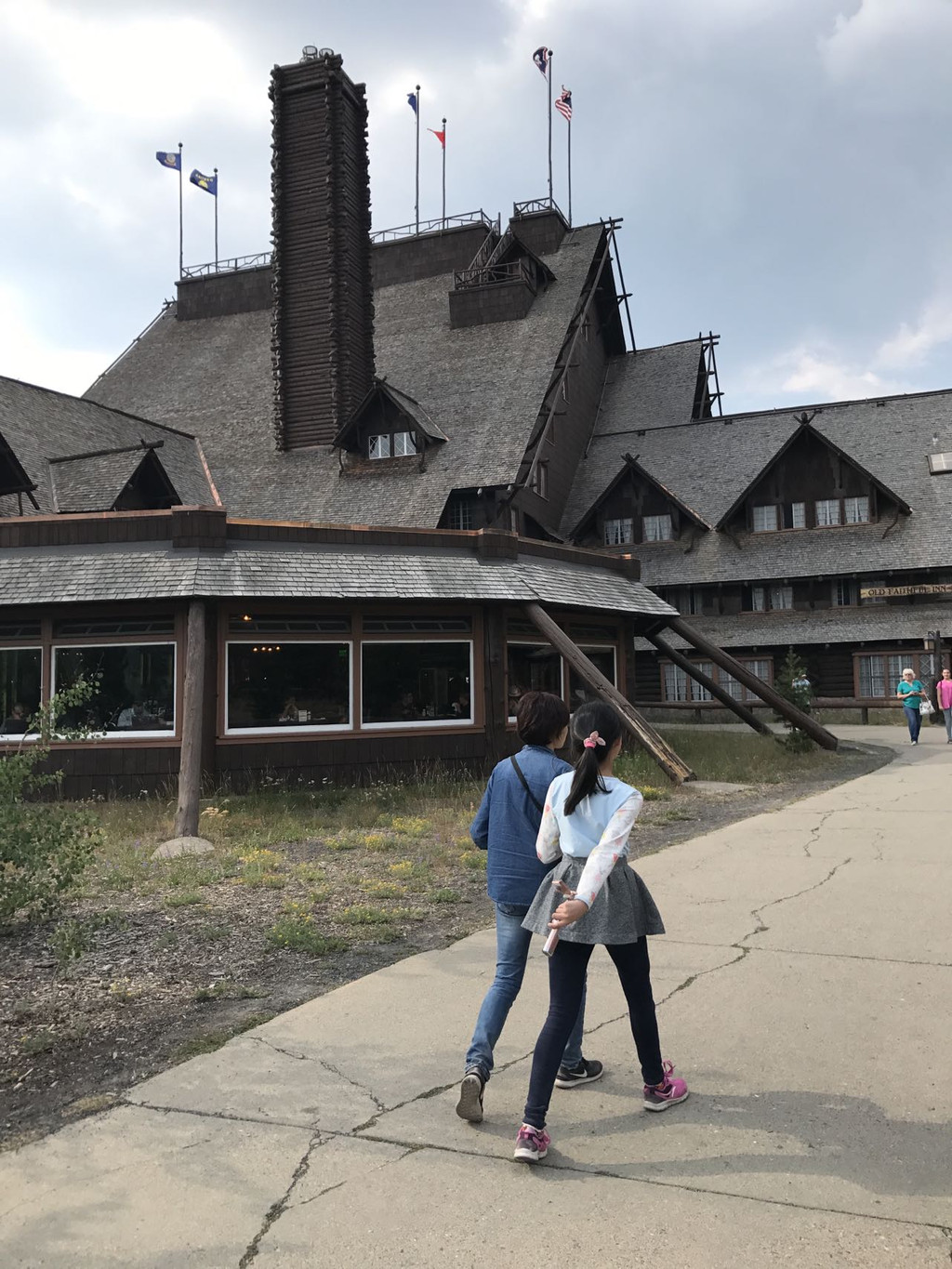 前往老忠实酒店喝杯水,纯木质结构的酒店。