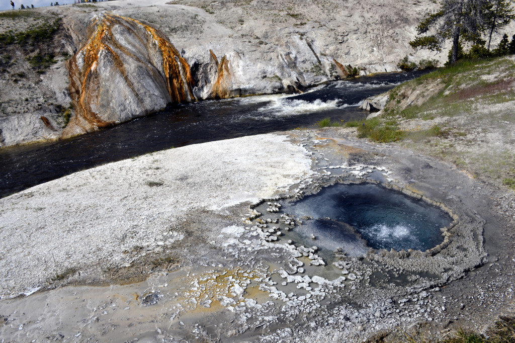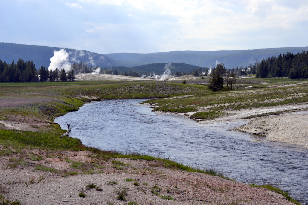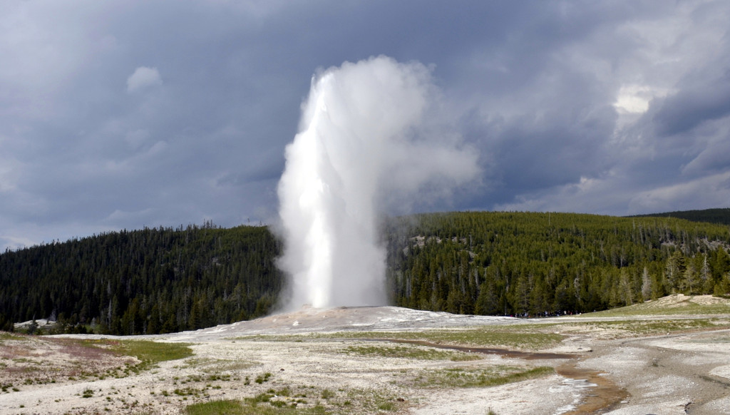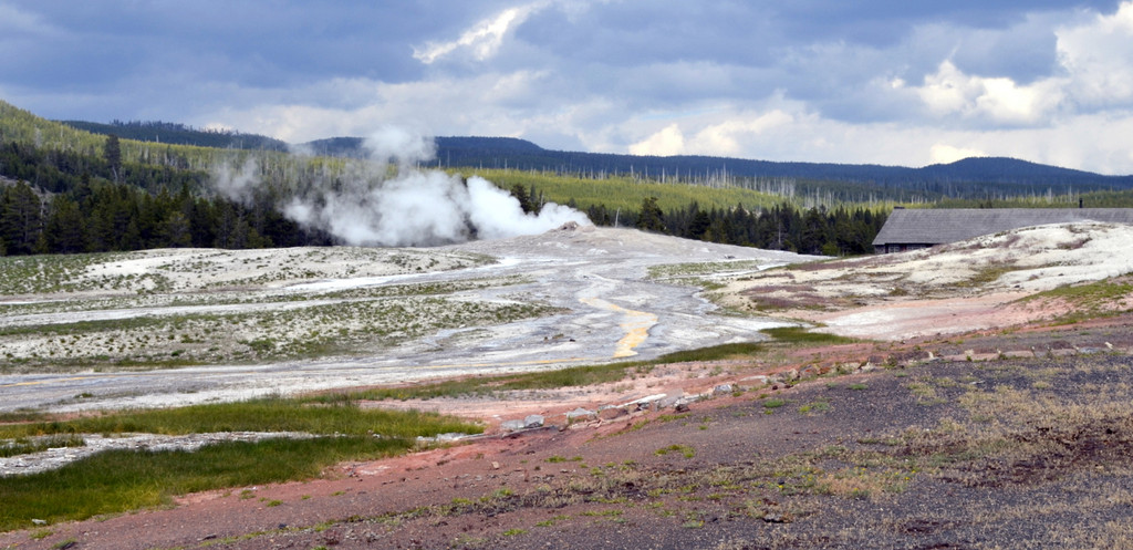 2023年的六月气温有点低,伴随着不时的雷阵雨,让人平添一份初夏的凉意。作为美国最著名的国家公园之一,黄石公园的车流量挺高,进门路过的宿营地(e.g. Madison)也是高挂客满。而沿路的Firehole Canyon Drive, Lower Geyser Basin, Midway Geyser Basin,有不少地方都找不到停车位,只能放弃。走走停停,20英里的路也花了一个多小时才来到Old Faithful。