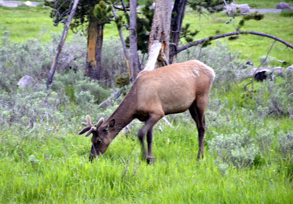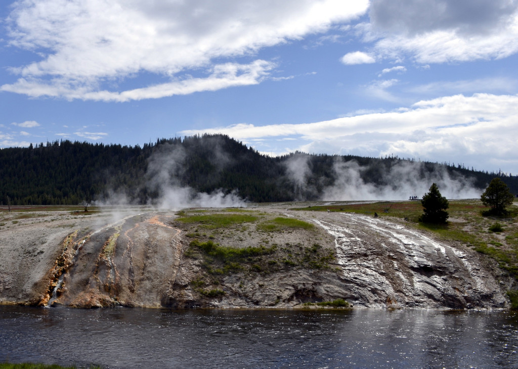 离开Old Faithful已经晚上6点了,好在北方的夏天要快十点天黑,还有足够的时间扎帐篷,生火做饭。从Old Faithful到Lake的路段不少在修路,速度提不起来,沿途的几个景点上几次都到访过,这回就直奔宿营地。Bridge Bay宿营地不是太大,设施也一般,没有淋浴,Checkin的地方有卖柴火,其它杂货要到不远的Fishing Bridge购买。